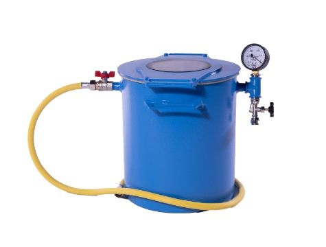 Данная вакуумная камера используется для дегазации таких материалов как силикон, полиуретан, всевозможные литьевые пластики и смолы, гипс, керамический шликер и т.д. Она имеет металлический корпус толщиной 5 мм с заваренным дном (надежная конструкция), укомплектована крышкой со смотровым окном, вакуумным шлангом, стравливающим и запорным кранами и вакуумметром.