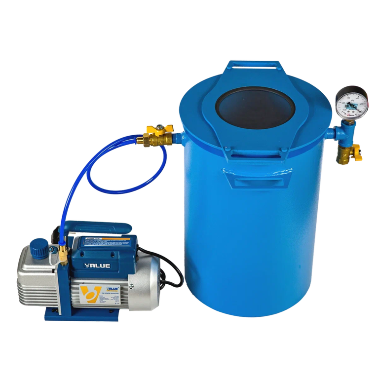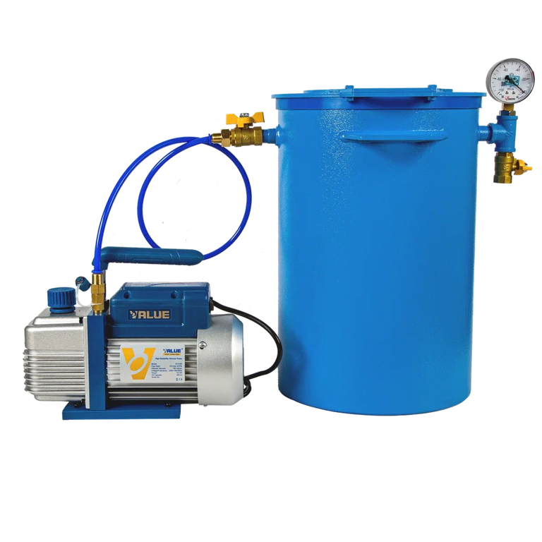 Данная вакуумная система используется для дегазации таких материалов как силикон, полиуретановая резины, всевозможные литьевые пластики и смолы, гипс, керамический шликер и т.д. Также для пропитки и сушки древесины, покраски и напыления различных материалов. Особенностями данной вакуумной системы являются: